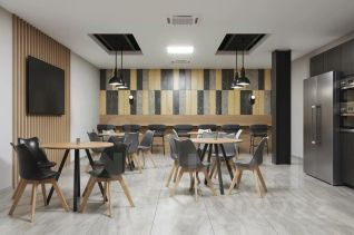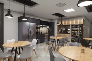 Блок функциональной планировки, есть зона ресепшн, 3 рабочие зоны open space, отдельные кабинеты, переговорные комнаты, кухня и собственные санузлы. Выполнен дизайнерский ремонт.