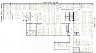 Описание помещения: Офисный блок рассчитан на 360 рабочих мест. Полностью мебелирован.