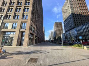 Первая линия домов, высокий пешеходный и автомобильный трафик, густонаселенный