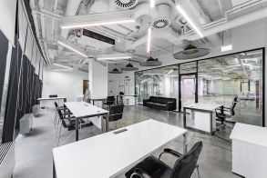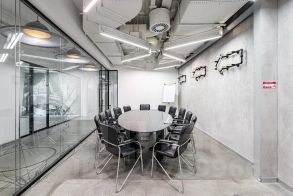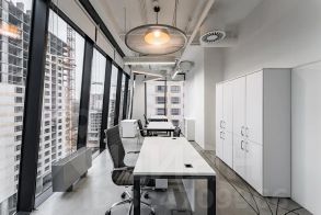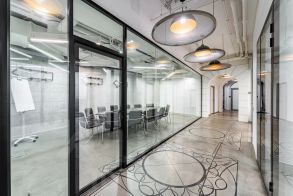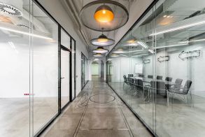 Зона ресепшн, 8 кабинетов, опен.спейс, переговорная комната, бытовка, серверная, мини кухня, санузелы раздельные.