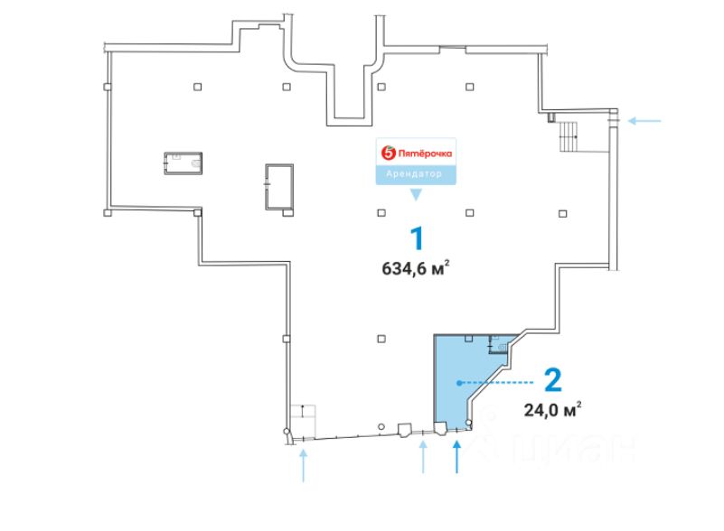 Аренда Street Retail помещения торгового или свободного назначения (ПСН) площадью от 24,0 кв.м на 1 этаже жилого здания. Планировка — открытая (свободная), перекрытия — ж/б. Отлично подойдёт под любой вид деятельности: торговое помещение, магазин, ресторан, кафе, аптека, салон красоты, банк, офис продаж, кофейня и др.