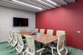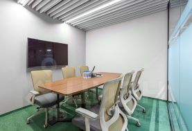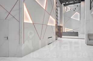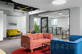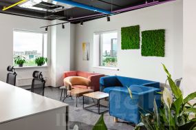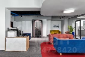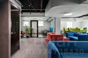 На этаже есть зона ресепшн, оборудованная кухня и зона приема пищи, зона отдыха и встречи гостей, санузлы и переговорные комнаты.