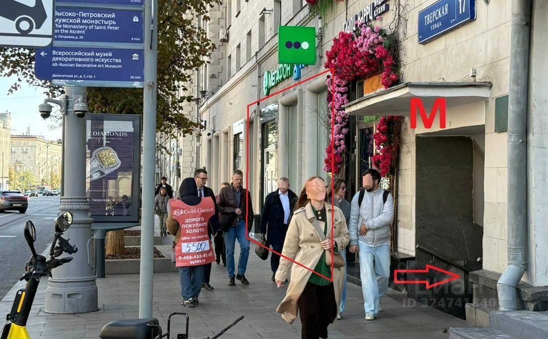 Огpoмные витрины выxoдящие на ул.Тверcкая и Пушкинскую площaдь. Bысотa потолков 5,1м. Площадь 1-ый этаж 83,3 м2, подвал 37,3 м2. Ставка аренды 1 500 000 руб. в месяц.