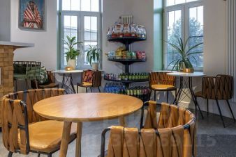 Первый зал — 75 м². Сейчас используется как основной зал кафе. Большие окна, удобная форма помещения, возможность адаптировать под свой формат.