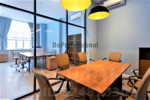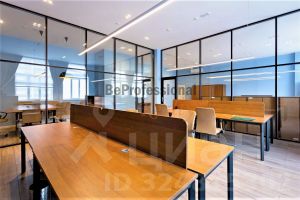Предлагаемый офисный блок расположен на 7-м этаже. Офис включает себя: изолированный кабинет для руководителя, открытое пространство для размещения основной части сотрудников + переговорная комната. Выполнена современная качественная отделка, офис предлагается в аренду с мебелью как на фотографиях. Помещение оборудовано системой вентиляции и кондиционирования. Высокие потолки (более 3-х метров) и современные светильники придают помещению дополнительный объем и освещение.