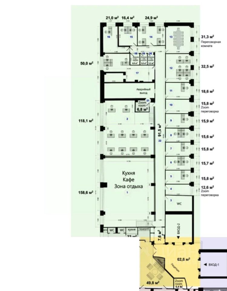 - 2 оборудованных переговорных комнат (1 из них zoom переговорная)