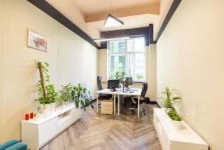 Дизайнерский ремонт: офис оформлен по индивидуальному проекту с использованием премиум-материалов.