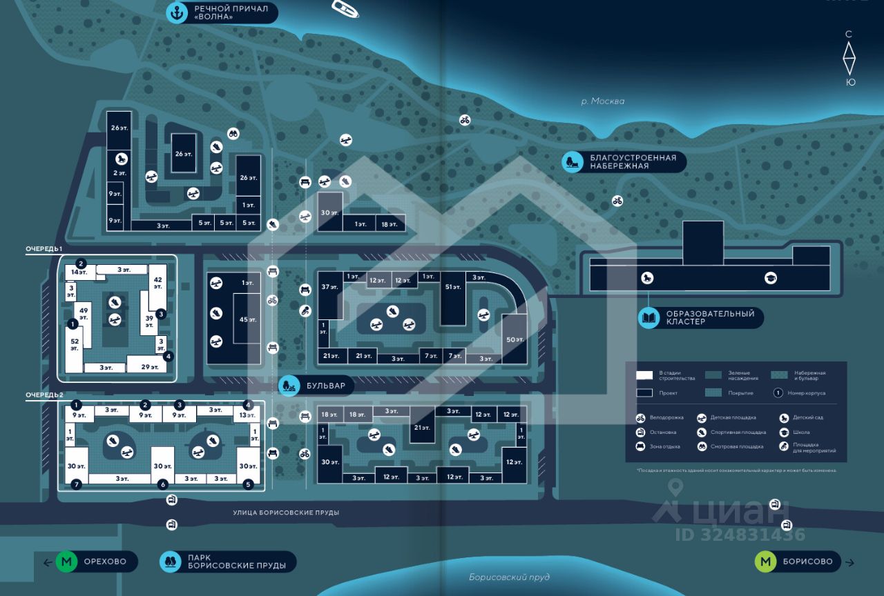 -ЖК состоит из 11 корпусов переменной этажности (от 9 до 52 этажей), рассчитанных на 2 802 квартиры;