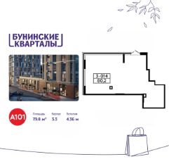 Сдается помещение площадью 79.80. на 1-м этаже ЖК "Бунинские кварталы".
