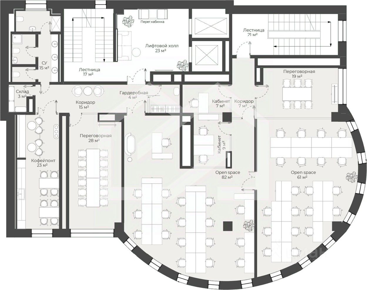 1095036 . Предлагаем в аренду сервисный офис площадью 310 кв. м, рассчитанный на 41 рабочее место, расположенный в здании по адресу Композиторская улица, 17