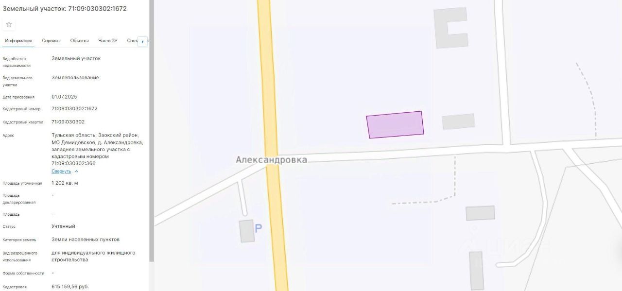 право заключения договора аренды земельного участка из земель населенных пунктов с кадастровым номером 71:09:030302:1672, площадью 1202 кв.м, местоположение: Тульская область, Заокский район, МО Демидовское, д. Александровка, западнее земельного участка с кадастровым номером 71:09:030302:366, вид разрешенного использования: для индивидуального жилищного строительства.