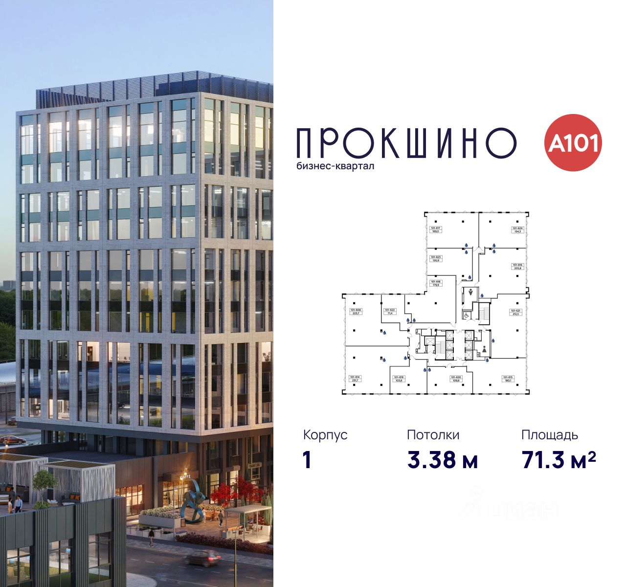 Бизнес-квартал "Прокшино" - это многофункциональный деловой квартал площадью более 177 тыс. м2. В его составе 5 офисных зданий класса "А" высотой до 13 этажей, 2-этажный торговый центр, панорамный ресторан с открытой террасой, современный фитнес-центр. На первых этажах дизайнерские лобби с зонами ресепшен, лаунж-зонами, а также кафе, магазины и сервисные службы.