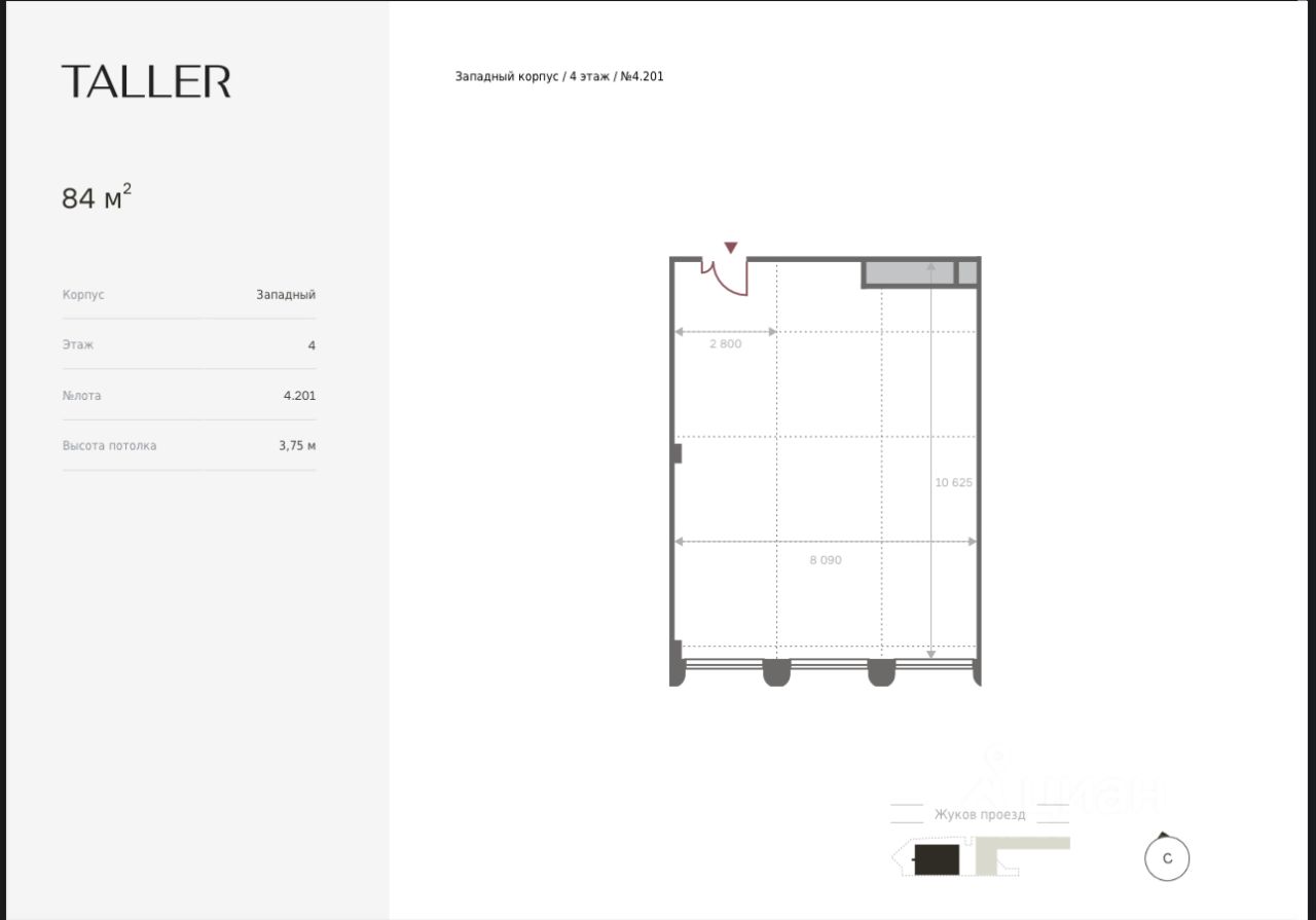 Высота потолка: 3,75 м