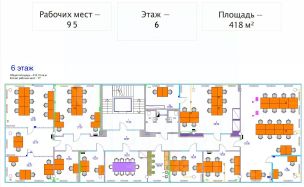 Описание помещения: Площадь типового этажа около 415 м2.