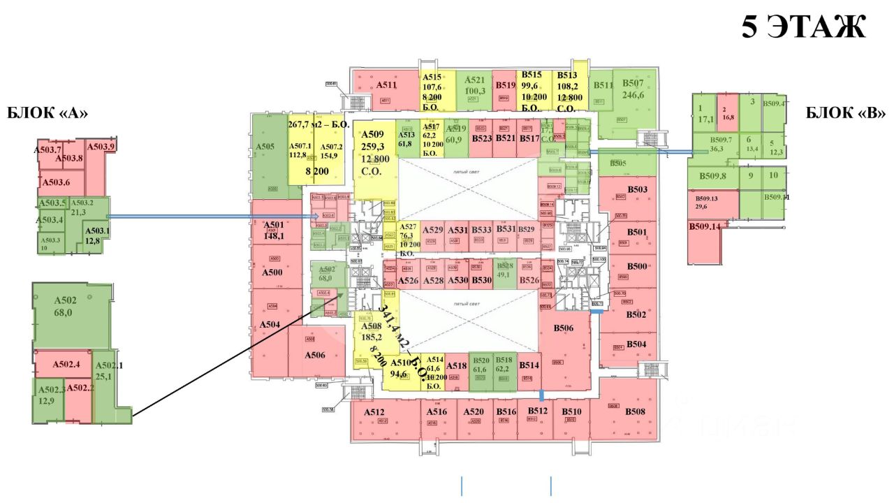 Этот лот состоит из нескольких помещений: 99 кв. м., 137 кв. м., 91 кв. м., 140 кв. м. и 565 кв. м.