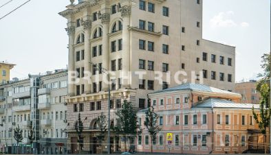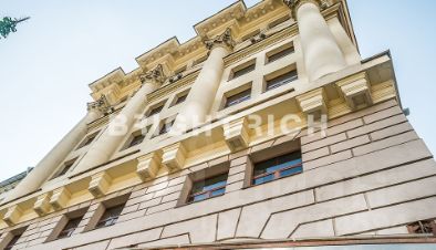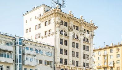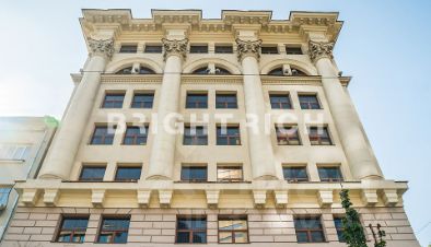 Аренда офиса в бизнес-центре класса А. Деловая зона между Садовым кольцом и ТТК, район Арбат, ЦАО. БЦ Новинский — это здание, возвышающееся над близлежащей застройкой, выгодно выделяющееся на её фоне архитектурным обликом. Фасад здания выполнен в неоклассическом стиле, его украшают пилястры с коринфскими ордерами.