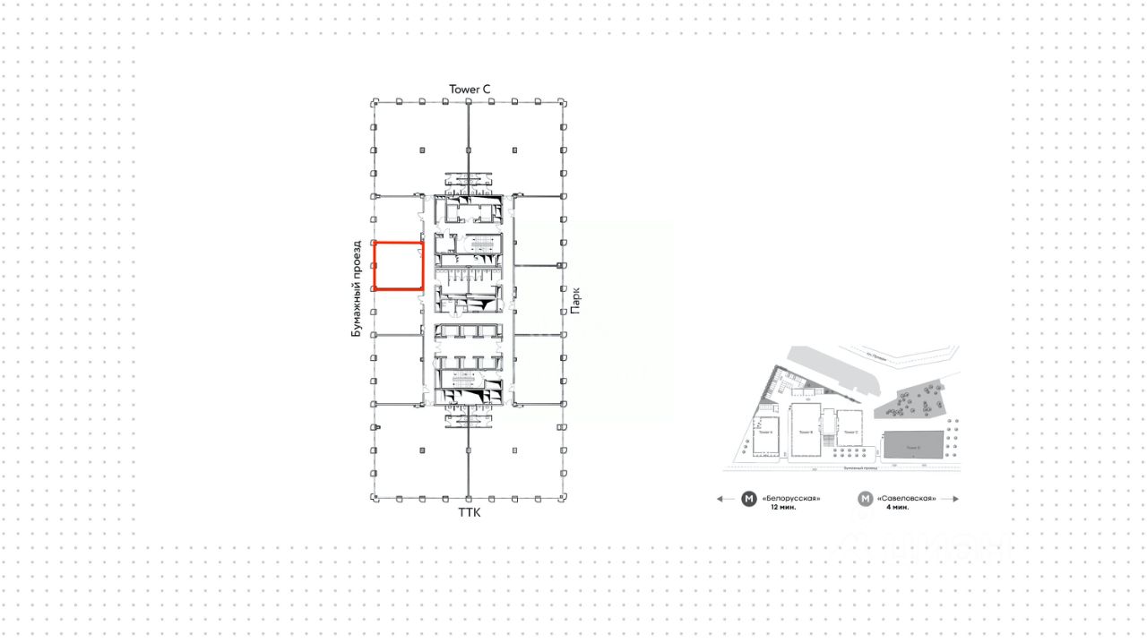 Офис площадью 106 м² расположен на пятнадцатом этаже в корпусе D в бизнес-центре Stone Towers. Готовы сделать отделку по ТЗ заказчика. Вход осуществляется через общее лобби в здании по пропускам.