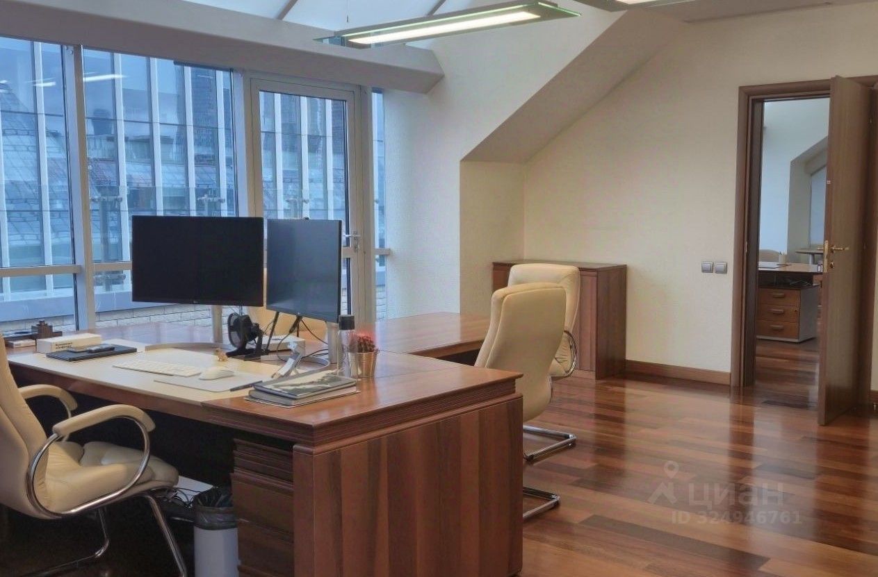 Описание помещения: Офисное помещение с качественной отделкой. Есть vip переговорная со стеклянной крышей. Кухня и сан. узлы в блоке.
