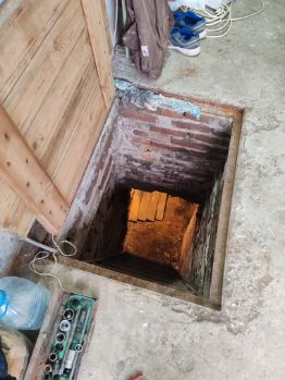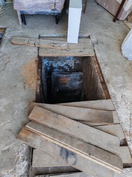 Подвал 7,9 кв.м, ширина 3,18 м, длина 3,54 м, высота 1,8 м.