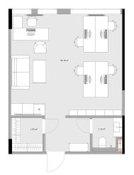 Помещение располагается на 2 этаже отдельного офисного блока на закрытой территории ЖК "Балтийский". Общая площадь 43 м2 включает в себя просторное рабочее пространство правильной формы (37 м2) с 3 большими окнами на юго-восток, личный санузел, кладовую/гардеробную и зону прихожей.