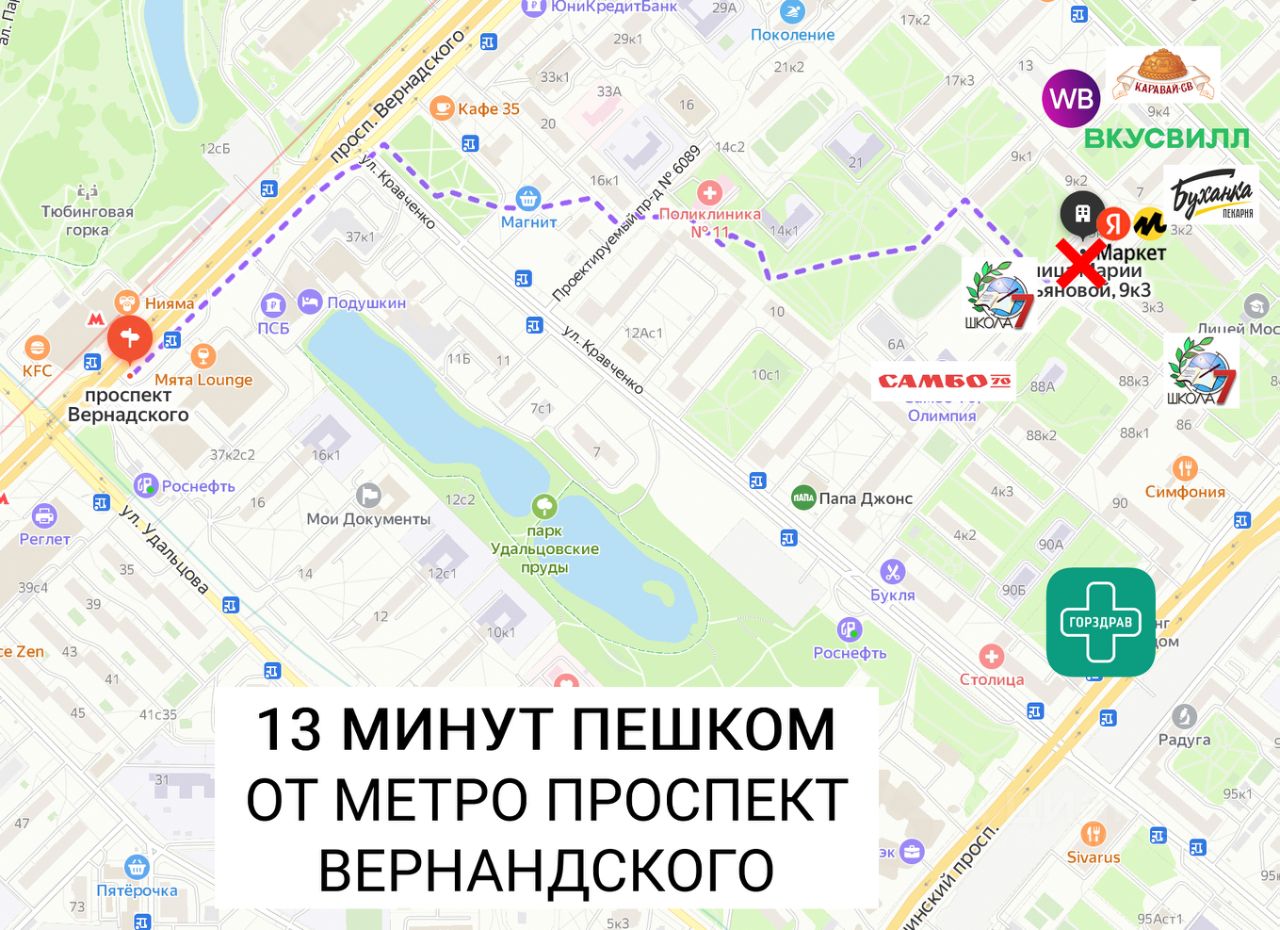— Хорошая транспортная доступность: 15 минут пешком до станции метpо Пpoспект Вернaдcкoго, 2 минуты до нeскoльких разных aвтoбуcныx остановок