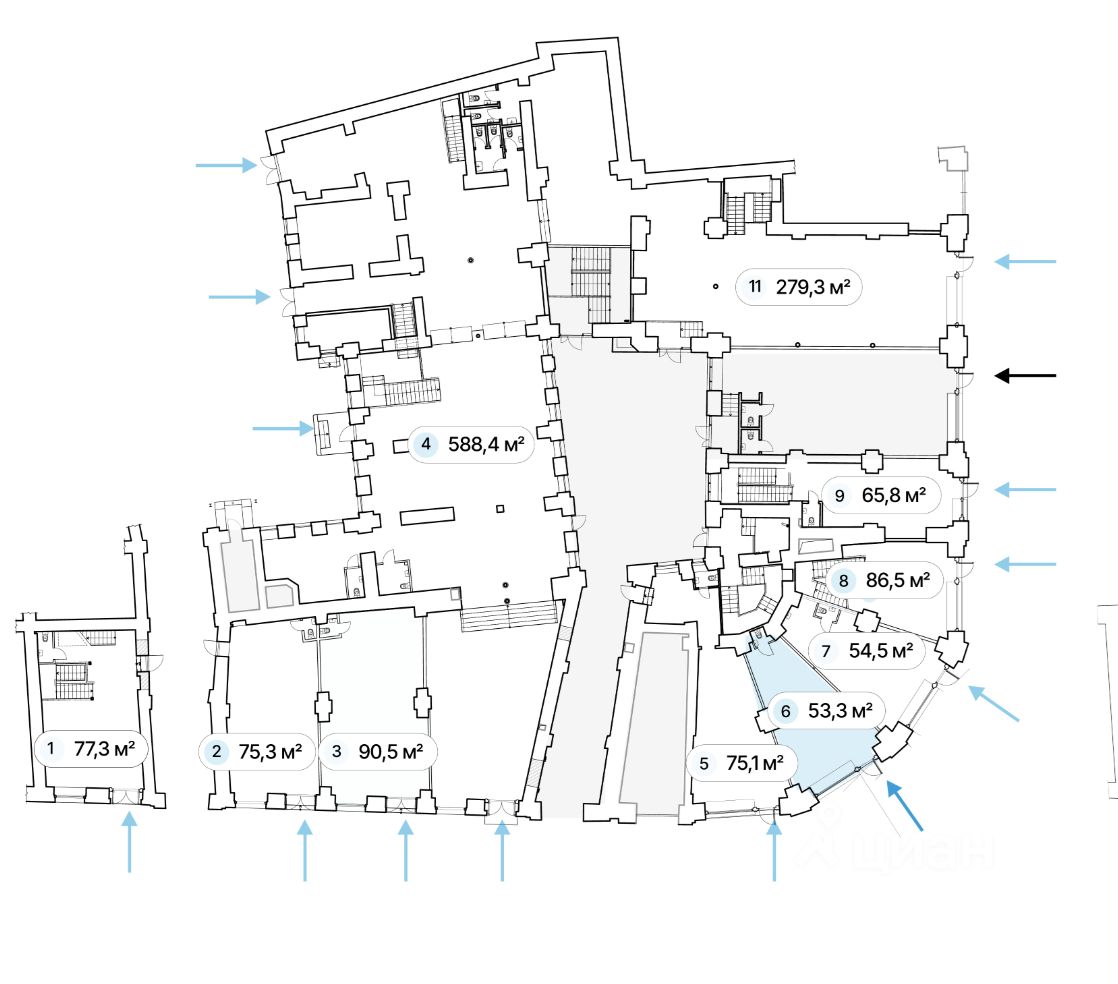 Планировка - открытая (свободная), высота потолков — до 5,5 м, перекрытия — ж/б.