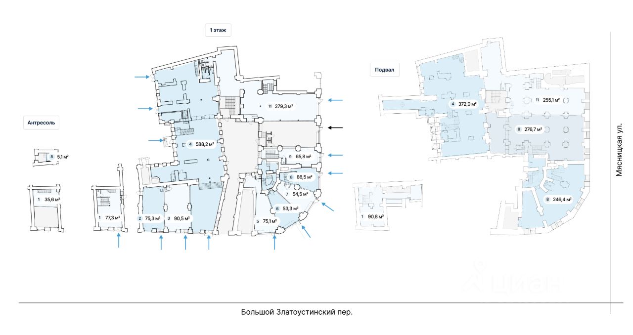 Предлагаются в аренду помещения на улице Мясницкая, ЦАО г. Москвы.