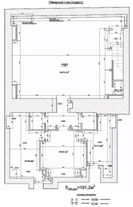 Площадь: 181,2 м² (1 этаж 45.6 м² + подвал 135,6 м²)