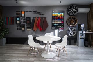 - Отдельная комната для оклейки плёнкой — оснащена системой фильтрации воды, вентиляцией, кондиционированием и дополнительным освещением.