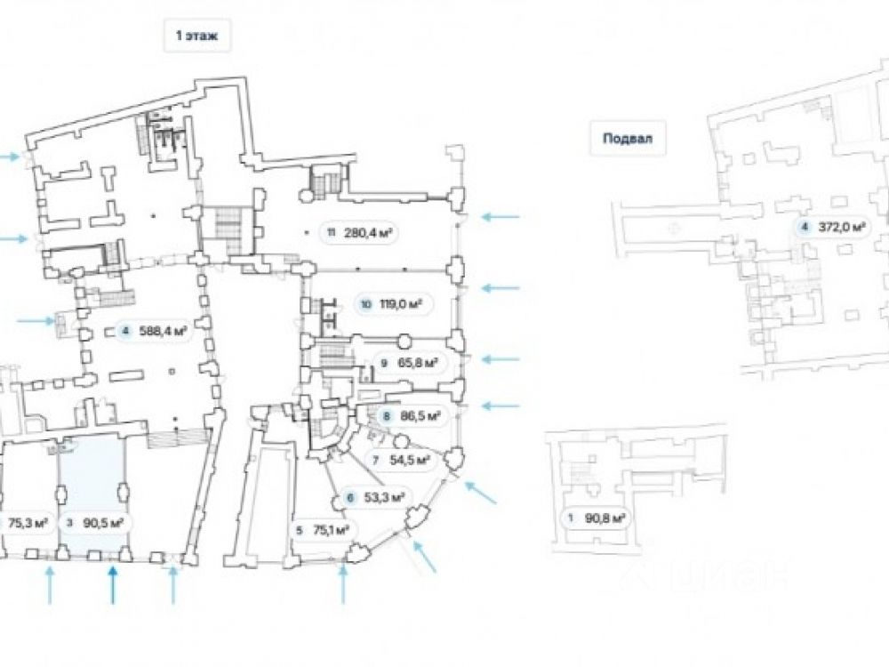 . Отдельные входные группы с фасада с 1-ой линии, есть входы со двора.