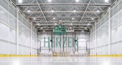 Ровный бетонный пол с антипылевым покрытием. Допустимая нагрузка на пол 8 т/м2