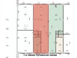 1-й этаж административного здания. Общая площадь - 90.3 м2. 2 отдельных входа с улица с первой линии, и 2 отдельных входа с задней части здания. Витринное остекление. Помещение с ремонтом. Все центральные коммуникации - свет, вода, канализация, отопление. Высота потолков 2.5-3 м. Эл. мощность 16 кВт. Парковка перед фасадом.