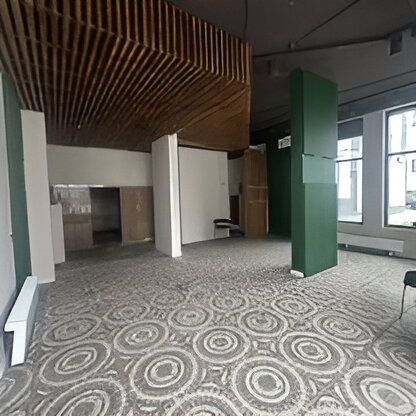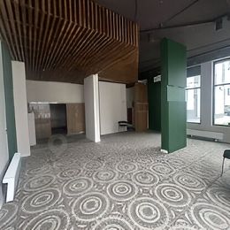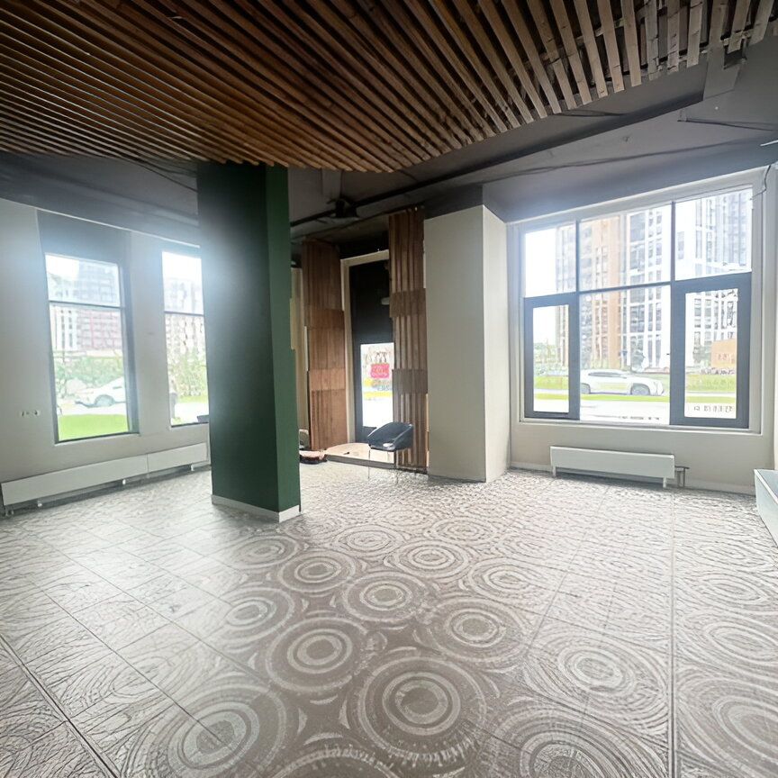 Первый этаж 18-этажного жилого дома. Площадь помещения: 84,2 м². Панорамное остекление вдоль всего фасада, открытая планировка, отдельный вход с первой линии. Высота потолков — 3,9 м, электричество: 60 квт, городские коммуникации, независимая вытяжка, есть возможность получения алкогольной лицензии.
