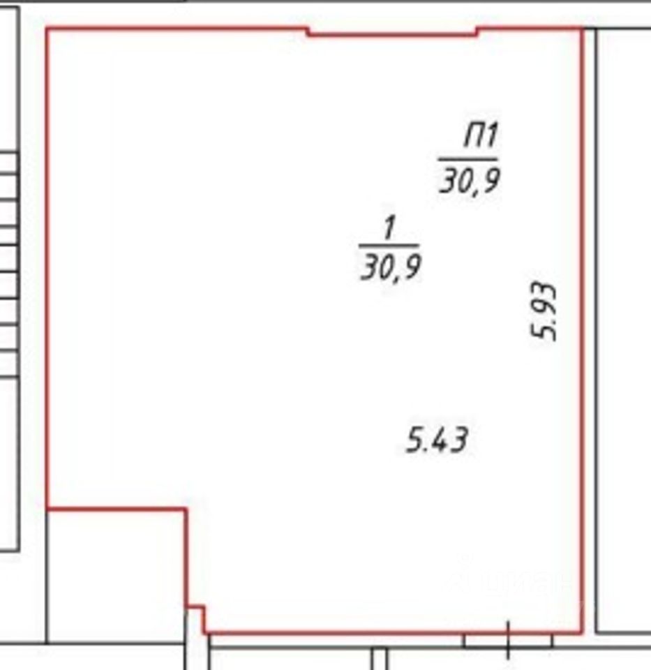 Помещение 30.9кв.м, расположено на цокольном этаже.