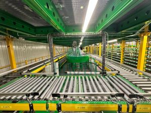 Конвейерно-сортировочная линия суммарной протяженностью 8,4 километра, по ней между этажами перемещаются ящики для заказов двух размеров.