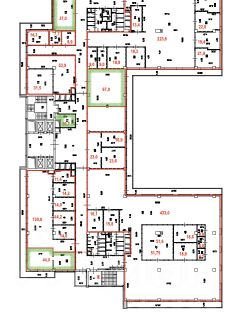 В аренду предлагается офис порядка 44 м² на 5 этаже. Офис свободен и готов к въезду. На плане выделено зеленым цветом.