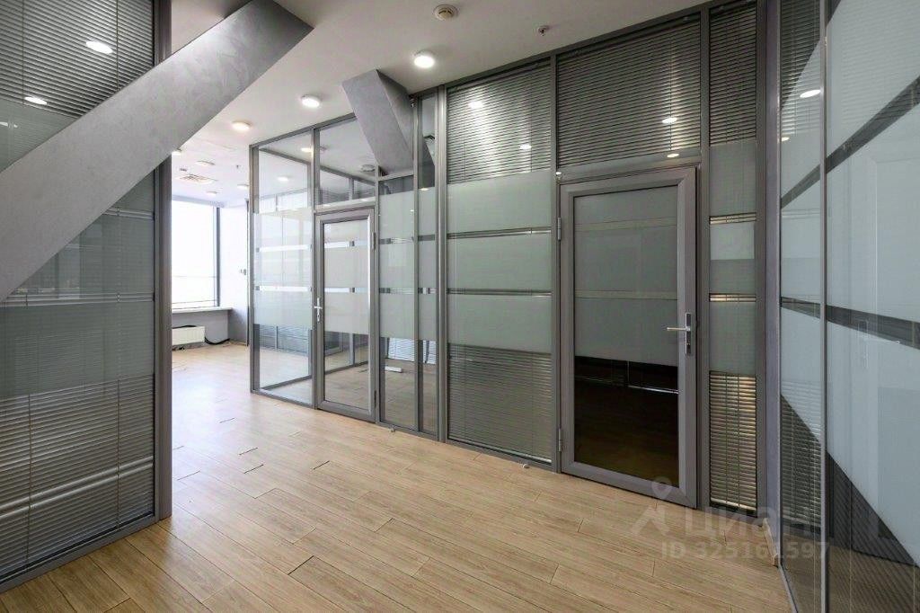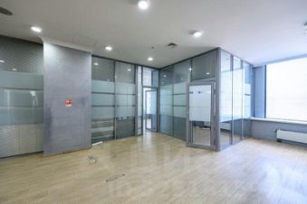 Общая площадь - 329,7 м². Офис занимает половину 9-го этажа 13-этажного здания и имеет обособленный вход и свои санузлы. Установлены стеклянные перегородки, ресепшн, переговорная комната, усиленная металлической дверью с домофоном. Большие окна выходят на север, восток и запад. В одном из санузлов стоит душевая кабина.
