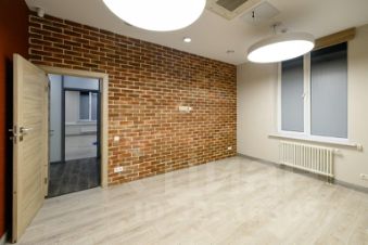 Установлены стеклянные перегородки, ресепшн, переговорная комната, усиленная металлической дверью с домофоном. Свои санузлы, в одном из которых стоит душевая кабина.