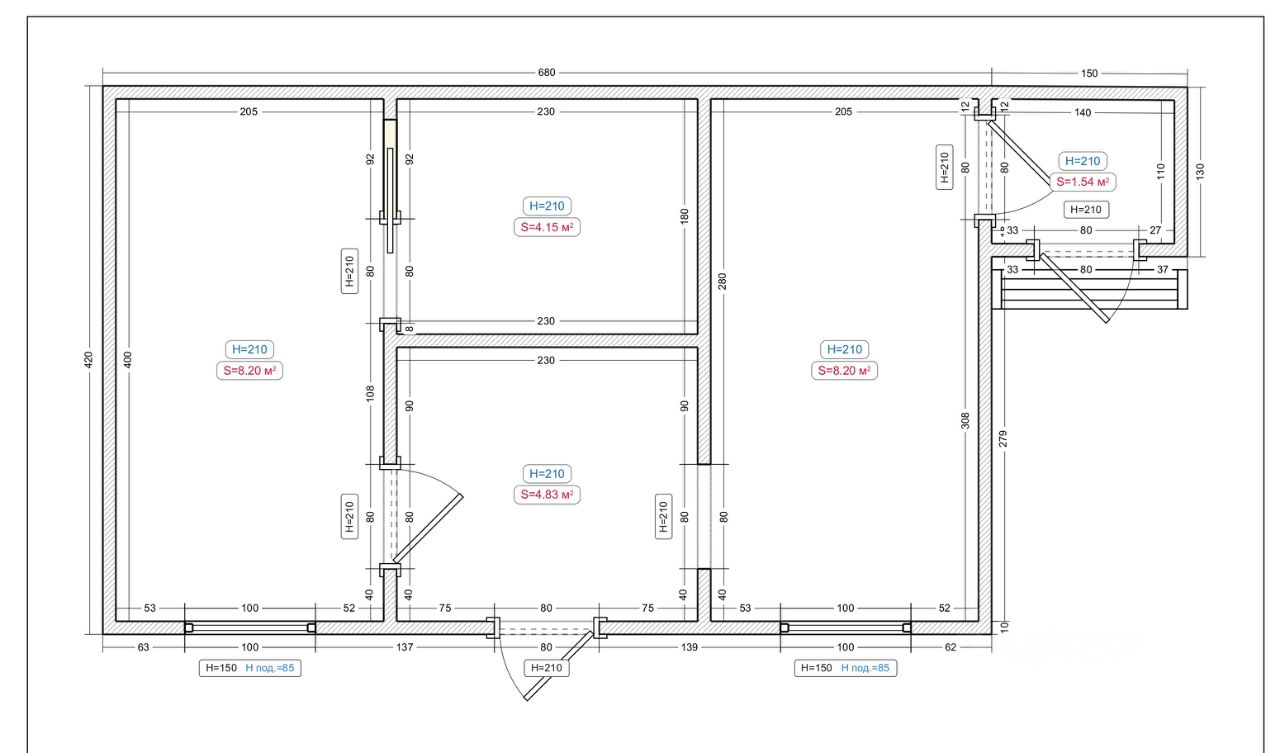 Высота потолка 2,1 м. 380В, 3 фазы, 15кВт.
