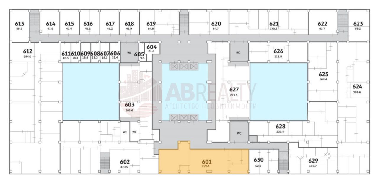 199,4 кв.м.: 6 этаж. Назначение - офис.
