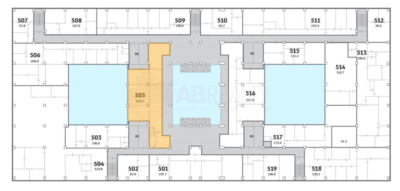 219,2 кв.м.: 5 этаж. Назначение - офис.