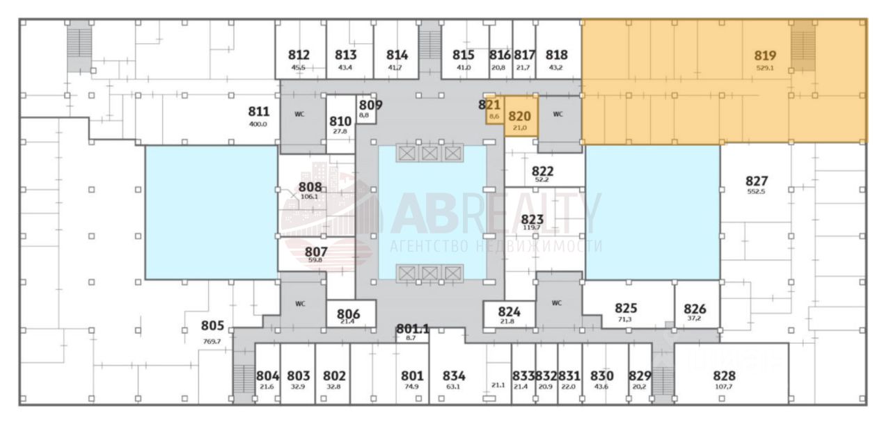 558,7 кв.м.: 8 этаж. Назначение - офис.