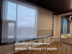 - Двойные рулонные шторы: блэкаут + вуаль.