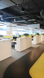 Помещения с панорамными окнами, отличной современной отделкой, серверными и кухонными зонами, на этажах оборудованы переговорные комнаты. Основные планировочные решения в формате open space.