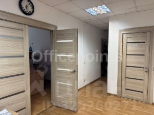 В помещении выполнена офисная отделка, кабинетная планировка (ресепшн, кабинеты, переговорная комната, кухня, 2 санузла), с мебелью.