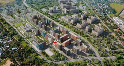 Помещение в очень выгодном расположении - на пересечении основной торговой улицы, на которой расположены Магнит и Пятерочка в радиусе 100 метров, и главного пешеходного бульвара ЖК.