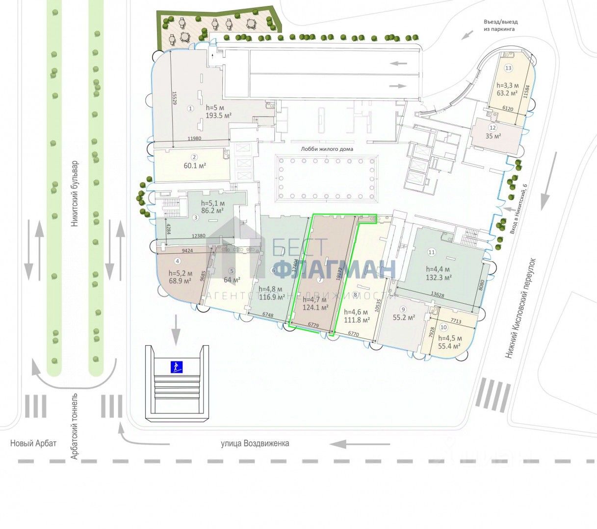 Арт. 128051952 В аренду предлагается торговое помещение в доме de luxe класса "Никитский 6", расположенном на пересечении улицы Воздвиженка и Никитского бульвара. Напротив находится станция метро "Арбатская", в пяти минутах ходьбы - Большая Никитская улица и район Патриарших прудов.