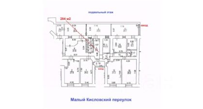 Сдаётся в аренду помещение свободного назначения площадью 284 м² на подвальном этаже. Объект расположен в Москве, ЦАО, Пресненский район, Средний Кисловский пер., 5/6с3, в шаговой доступности от станций метро "Арбатская" и "Александровский сад". Ставка аренды — 1 500 000 рублей в месяц.
