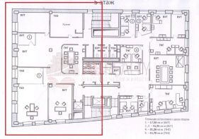 5 этаж. Планировка смешанная: свои с/у, кухня, переговорная, серверная.