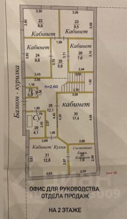 Ванная, су, балкон с курилкой, 5 кабинетов, кухня-кабинет, кабинет для системных блоков.